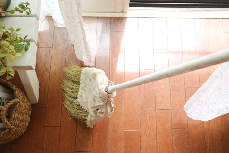 ★窓を開けて、床の5分掃除ほうきで掃いたり、モップで水拭きしたり(週に2~3回)。丁寧にというより、角や端っこのほこりをざっくり取る感じで。掃除機は週末の1回だけ。