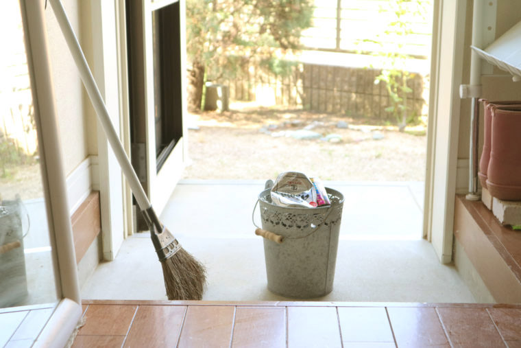 ★玄関の掃除出勤時に、たたきを掃きます。ゴミを外のゴミ箱へ移したり、ゴミステーションへ立ち寄ったり。