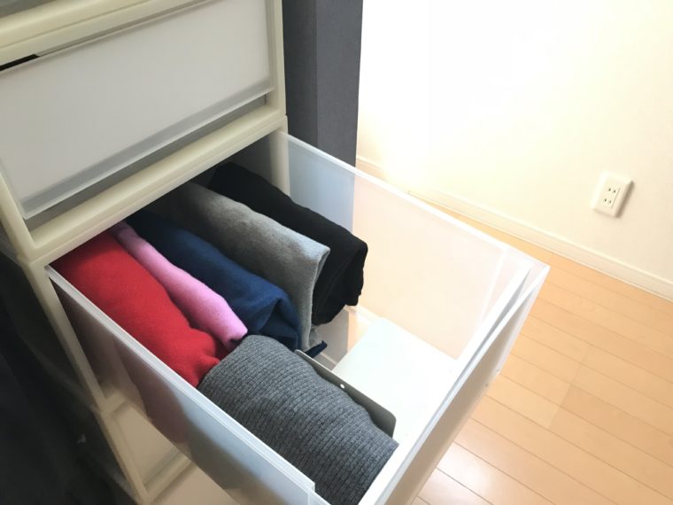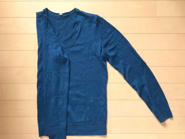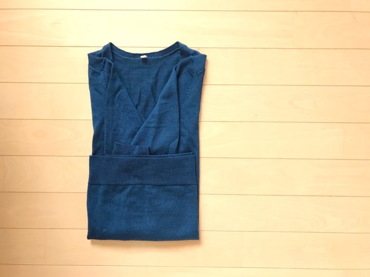 ニットやTシャツなどの編み物は吊るすと伸びてしまう可能性があるため、たたむ収納に向いています。たたみ方は色々と方法がありますが、私が基本としているたたみ方は以下の通りです。