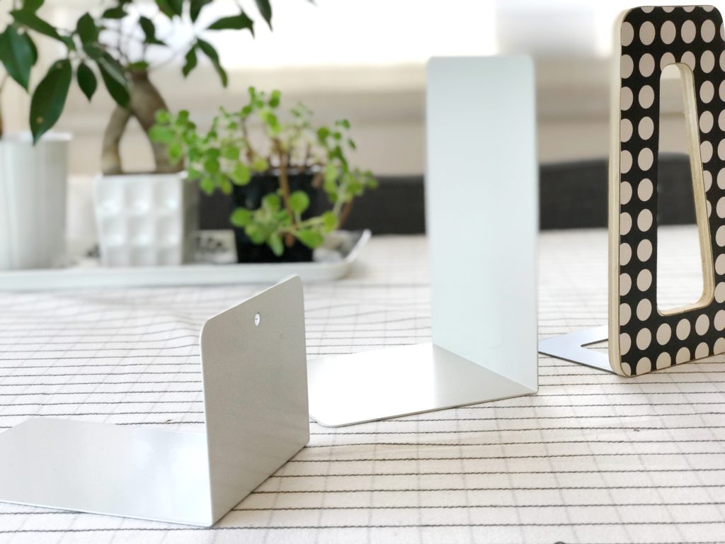 立てた本などが倒れないように支える道具「ブックエンド」。このしっかり支える特徴を利用して、立てたものが取り出しやすく見つけやすい収納を作ってみませんか?ブックエンドは装飾のないシンプルなL字型のものが使いやすくてオススメです。ブックエンド収納でできることは2つ!支える・・・形の不安定なものや倒れやすいものをしっかり支える!仕切る・・・棚や引き出し内の空間をやんわりと分ける!では実際どのようにブックエンドを取り入れると便利なのか、収納アイデアをご紹介いたします!