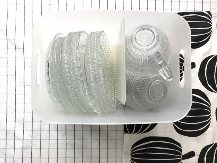 カップ&ソーサーをボックス内にまとめていますが、カップとソーサーが混ざり合って取り出すのがとても大変でした。そこでボックスにブックエンドを入れ込み、カップとソーサーのエリアを分けました!倒れやすいソーサーをしっかり支えてくれるし、混ざり合う心配もなくなり、イライラも解消ー!立てる収納は全体が見渡せて、探し物が見つけやすいし取り出しやすいのが特徴です!「立てる」を支えたり、「仕切る」をサポートしてくれるブックエンドを使った収納、ぜひチャレンジしてみてくださいね!