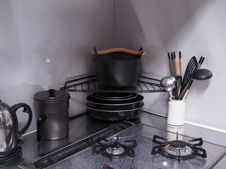 ・フライパンやお鍋もいちいち重ねてあるものをどけなくても出せるようにな