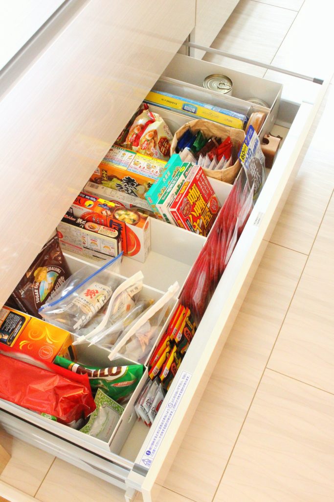 重複買いも無くなって、動線抜群の時短&お金が貯まるキッチンの出来上がりです。