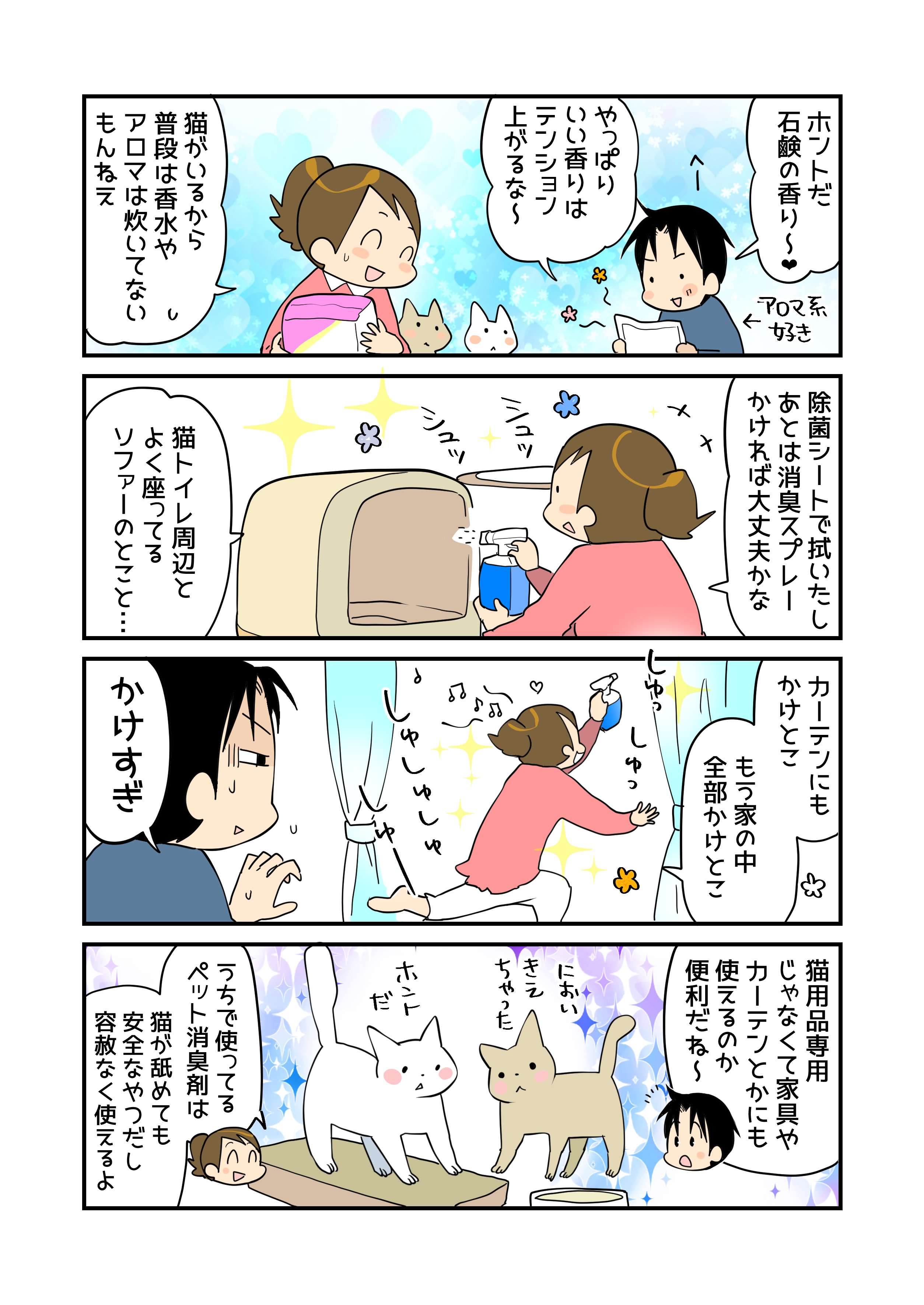 でも、最近はうっかり時間が空いてしまったときでもあまりニオイが気にならないものや、手をかけずにすむ消臭商品も多く出ていて、とても助かっています。