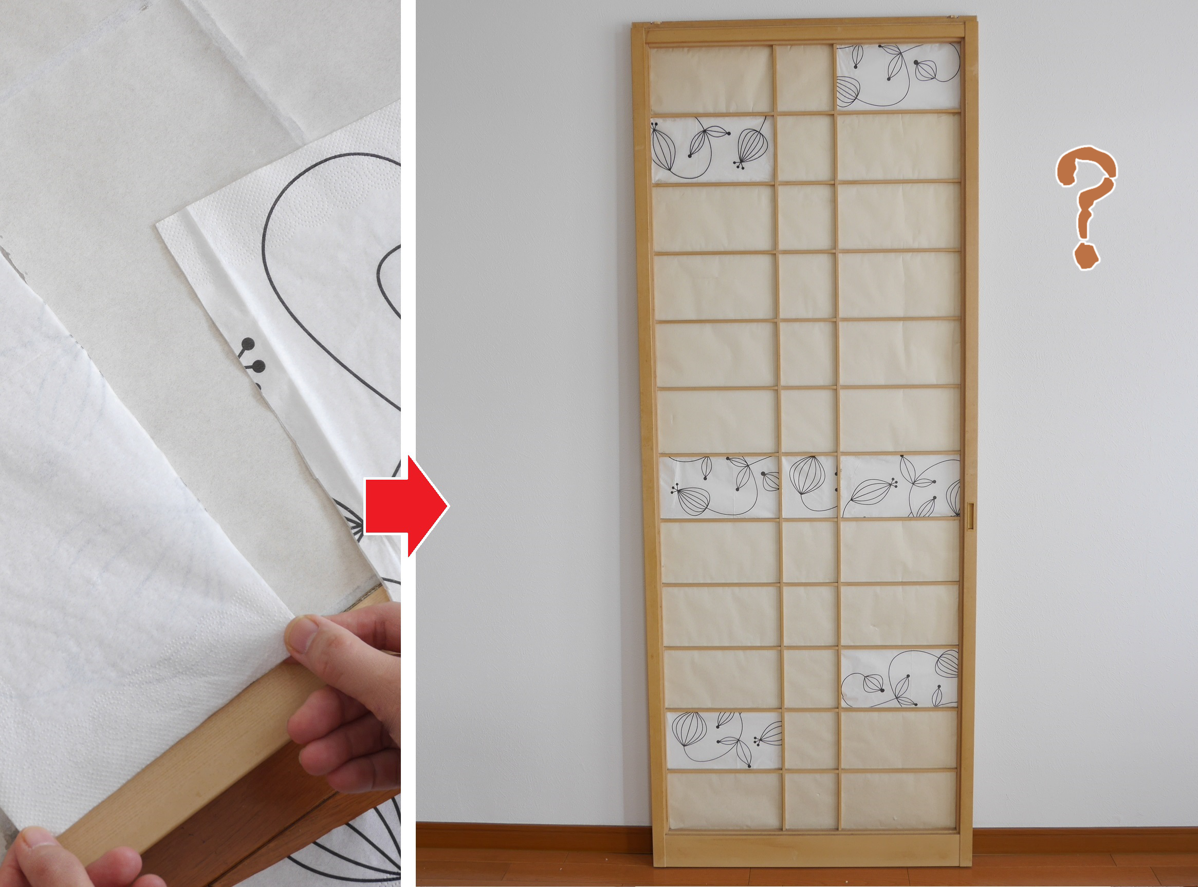 ほうほう、なるほどね。と思ったら、わが家の障子は樹脂製。アイロンが使えないと判明。ガーン。仕方なく両面テープで貼りました。