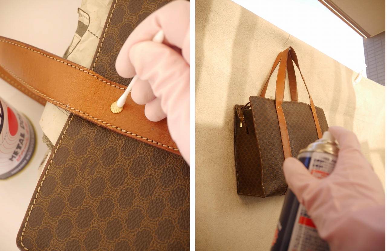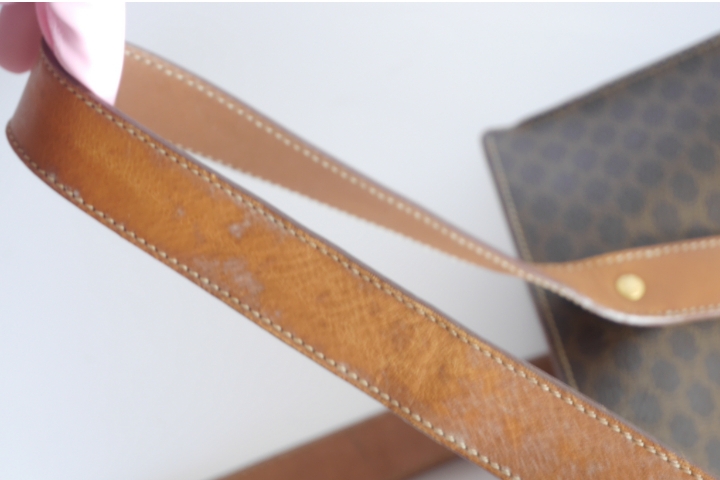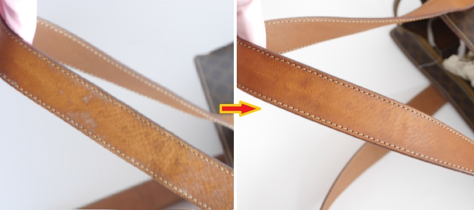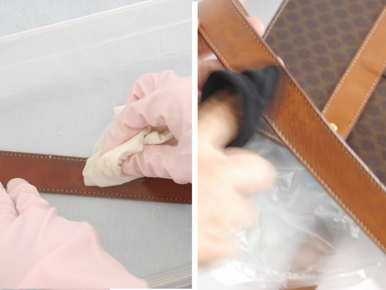 次はバッグのショルダー部分の雨シミとカビを対策。