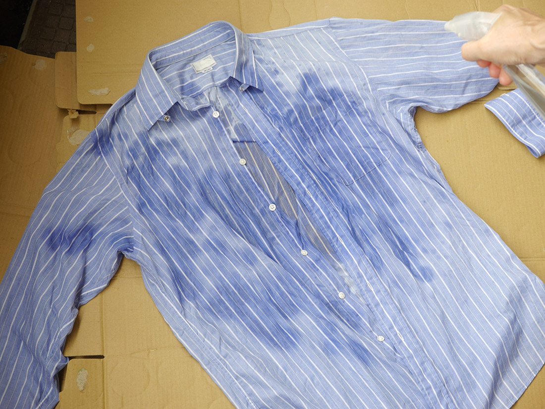 「柔軟剤」と「のり剤」、それぞれの溶剤が「繊維の上に膜を作り、