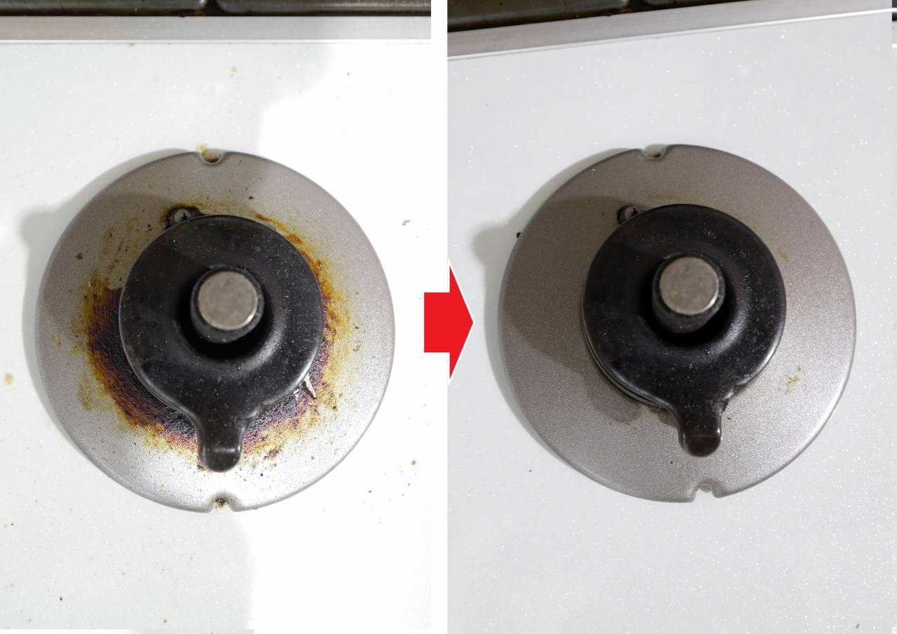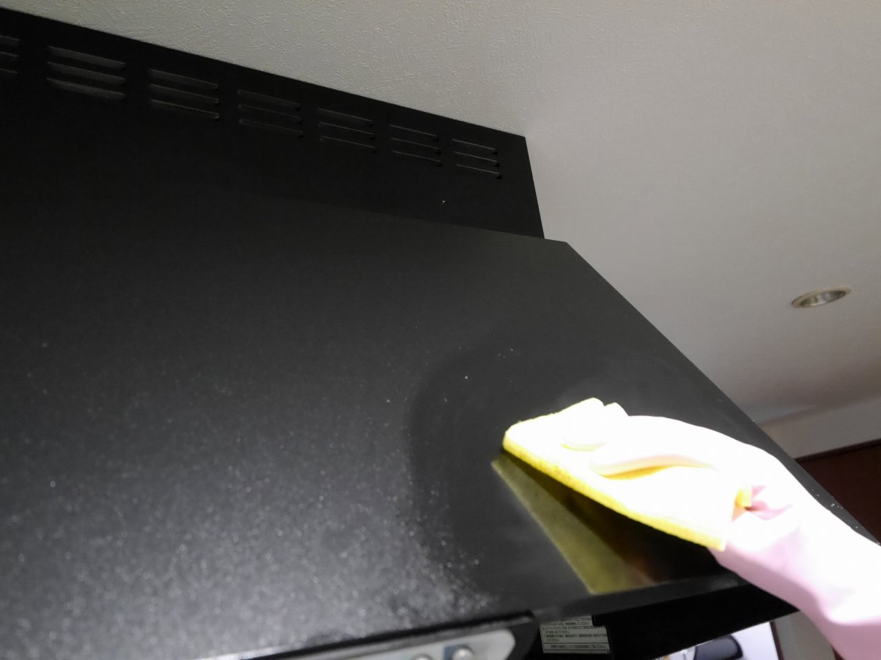 クロスの凸凹が、油汚れをこそぎ取っている感触が手に伝わります。で、あっけなく