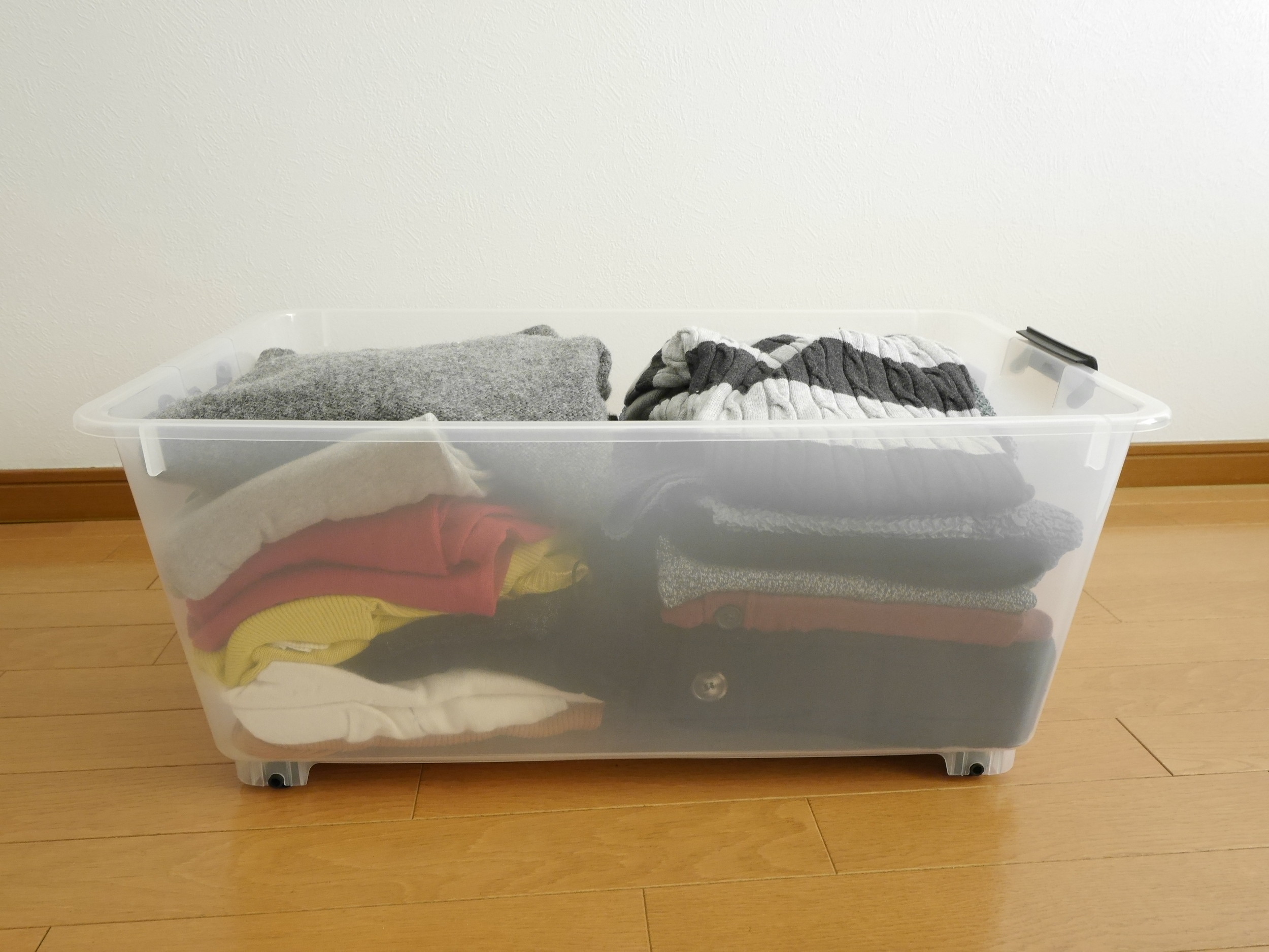 かさばる衣類の代表格といえばニット類ですよね。我が家には、衣装ケースまるまる一個ぶんのニットがうなっています。