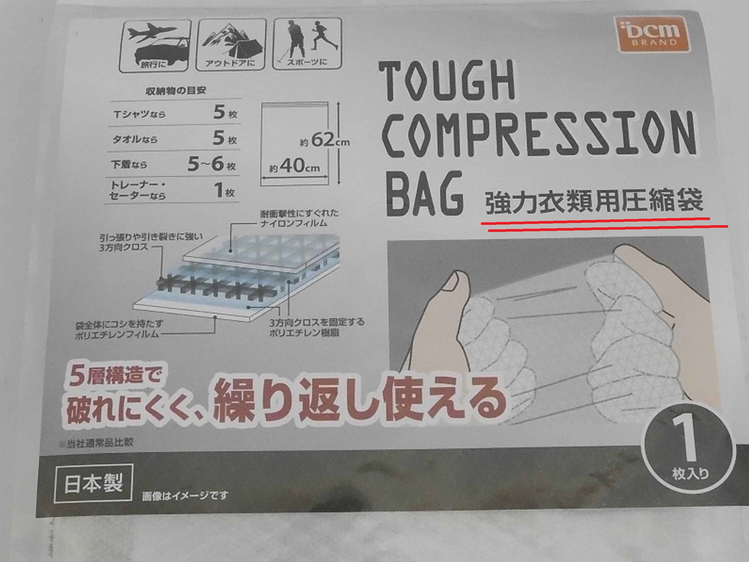 手に入れたのはDCM系ホームセンターのPB商品「強力衣類圧縮袋」。