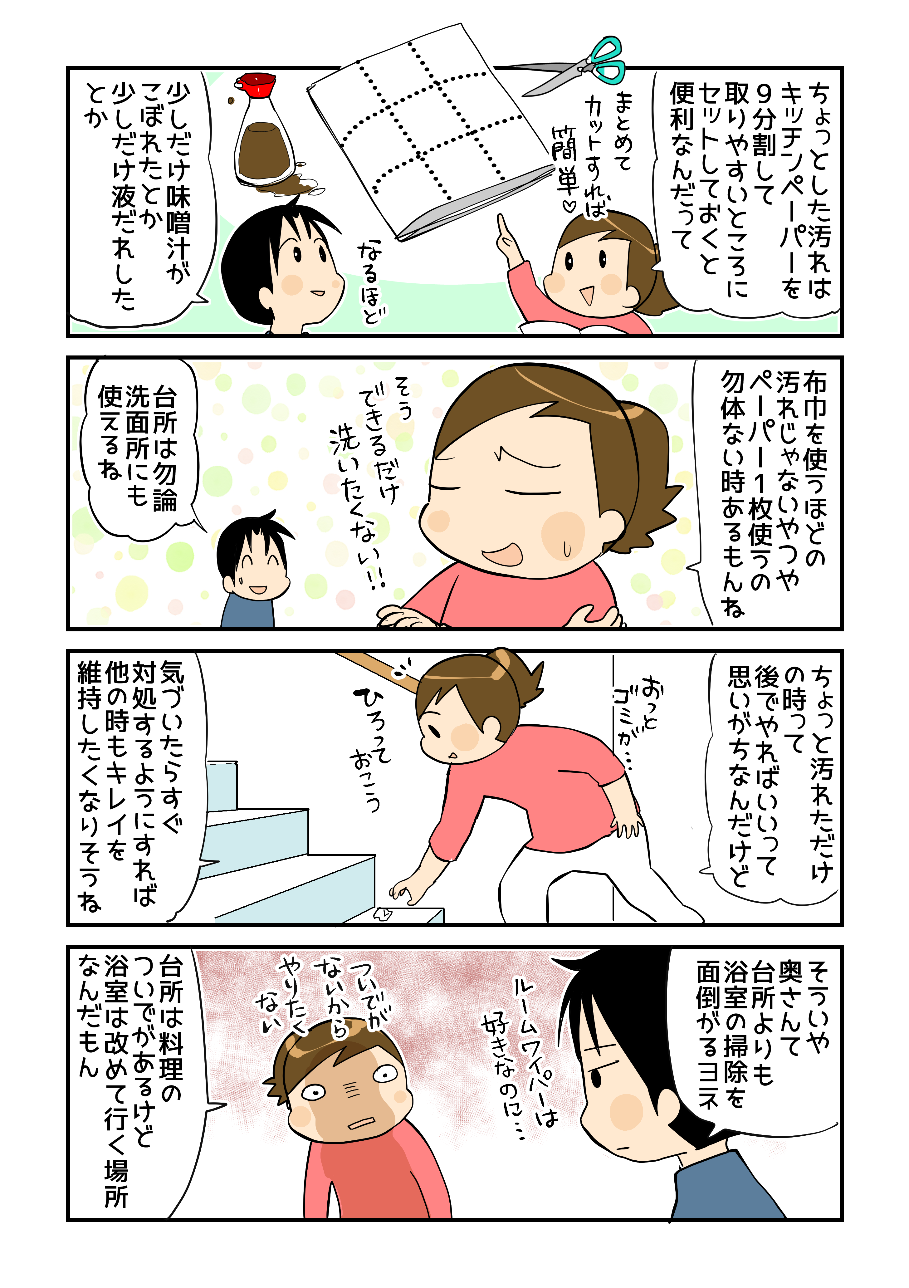 サンクチュアリ出版さんは「本を読まない人の為の出版社」と自負されているとのことですが この本も家事の裏技やポイント、ヒントが盛りだくさん。シンプルでとてもわかりやすいし可愛いイラストも描かれていてわかりやすく、勉強になります!テレビや雑誌などで見たネタもありますが、こうやって改めて読んでみるとしっかり理解できて嬉しいですね。今回私がご紹介した技以外にも、洗濯やキッチンで活用できる面白い技や豆知識がたくさんありました。そちらもぜ ひ試してみたいです♪
