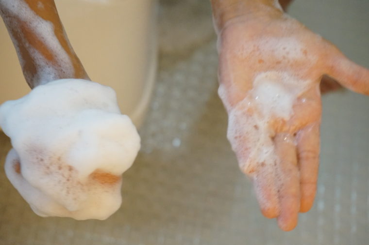 初めて使う柿渋ボディーソープは、キシリトール配合でとってもさっぱりとした洗い上がり(^^♪香りは、あまりいいとは言えないのですが、柿渋の殺菌消臭効果がより効いている気がしますよ!泡立ちはバッチリなので、洗った後の爽快感はバツグンです♪