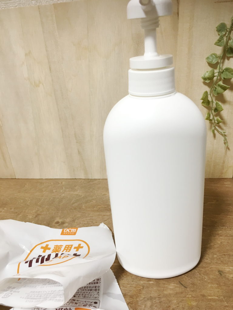パッケージを剥がすとシンプルな白いボトルになるところが実は気に入っています。市販のボトル用に見えるので、バスルームがスッキリします。