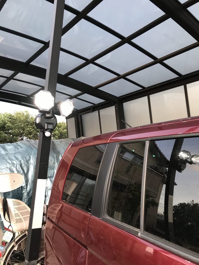 夜間、自宅の門周りには街灯の光しかなかったので、以前から暗いなとは思っていました。とはいえ、門の近くにはコンセントがないのでそのまま…にしていました(^-^;