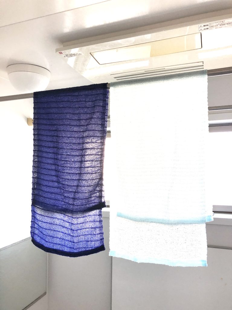 今回は比較の意味で「やわらかめ」と「かため」の2種類を使って試してみました。2つを見比べてみると、その織りの違いは一目瞭然!「やわらかめ」は洗い心地はソフトですが、洗い上りはスッキリ!「かため」はしっかりゴシゴシこすってくれる感じですね♪う~ん、これはたぶん好みですね。私と娘は「やわらかめ」、主人と息子は「かため」を使うことになりました。