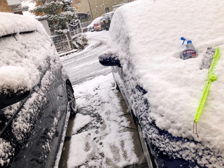 いつもは車のエンジンかけて、しばらく暖気してガラスの氷を溶かしている主人がそばで見ていて、予想以上の溶け方の早さにビックリしていました!(^^)!