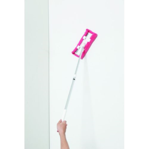 クリップ付きで、使い捨てのワイパーシートと通常の雑巾の両方を使用することができるワイパー。ワイパー部とポール部のジョイント部分にロック機能を付けてリニューアル。床以外の壁や窓、天井など、ワイパー部のグラつきなくスムーズに掃除ができるようになりました。また、立てかける時もポール部が左右に倒れにくい設計。毛足が長いマイクロファイバー雑巾付き。