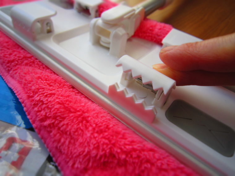 またぞうきんは4つのクリップがガッチリと挟んで固定してくれているので、ぞうきんが途中で外れちゃったり、ズレちゃうような心配もありません。もちろん、付属のぞうきんでなく古いタオルを使っても大丈夫♪