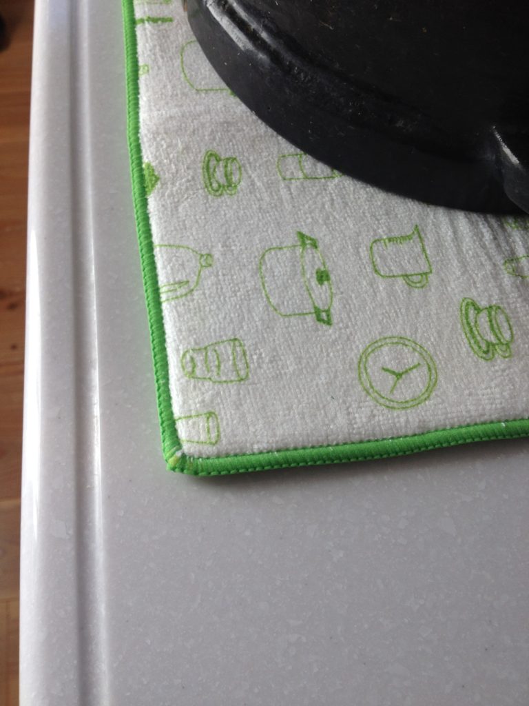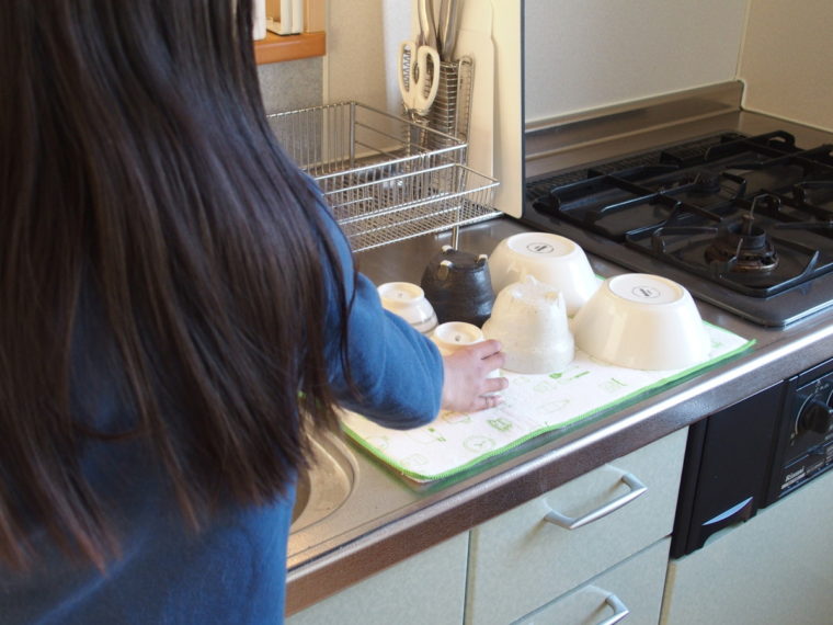 普段は1ミリほどの薄い水切りマットを使っていたのですが、食器を置くときに気を付けないと食器が欠けてしまうことがありました。このマイクロファイバーは厚みがあってフワフワしているので、少々無造作に食器を置いても、食器が欠ける心配はありません。また吸水力が高く、ぐんぐん水を吸ってくれるので、どんどん洗い物を置いても安心です。