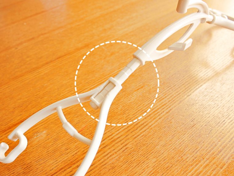 肩の部分はクルッと回すことができるので、肩の厚みを出さずに普通のハンガーとしても使うこともできます。またキャミソールなどを干す時には、肩紐を引っ掛けられる凹みがあるので、ずれ落ちてくる心配がないですね。