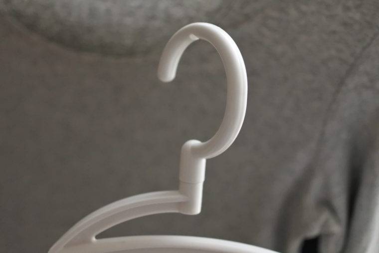 ハンガーのフックは360度動くので、室内のちょっとした場所にかけやすくて便利です。
