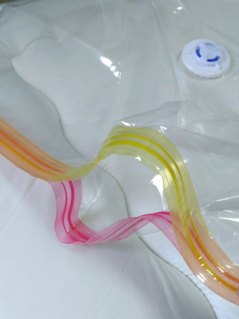 手で押さえながら吸引しても、うまく空気が抜けなくて手で押したり、上に乗ったり、何とかかんとか圧縮… いつも終わった時には疲労困ぱいです。