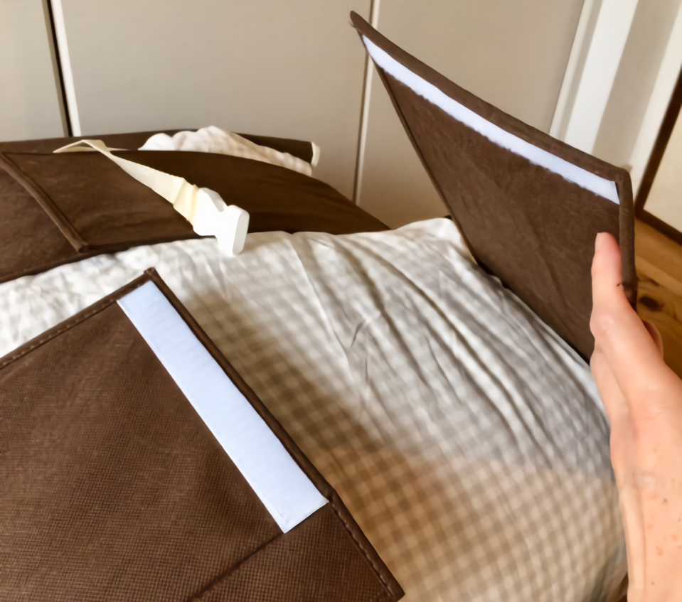 この収納袋は、羽毛布団を「折りたたみ、重ね、入れる、閉じる」の工程だけ。掃除機も専用の道具などもいっさい不要です。