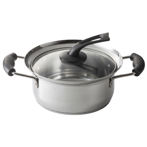 広口設計のため、吹きこぼれにくい両手鍋です。置き場所に困らないスタンド式のふた付き、内面にはメモリが付いているなど、使い勝手の良さも魅力。IH(100V〜200V熱源)とガスコンロの両方で使用可能。20cm※ご購入は店舗にお問い合わせください。