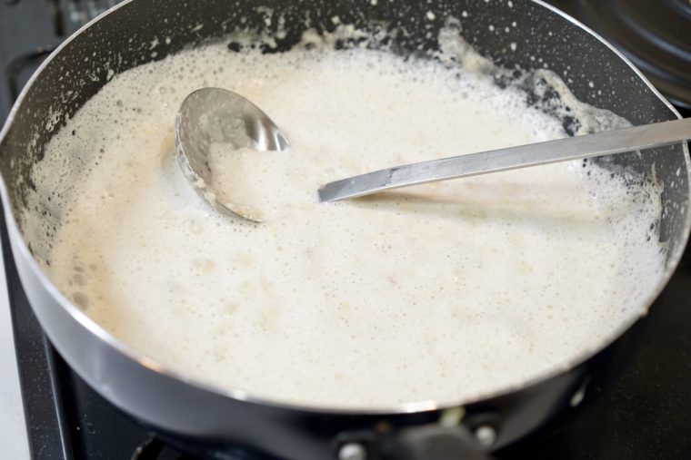 白葱・・・1本(白い部分のみ約90g)にんにく・・・3~4片(約35g)ベーコンスライス・・・2枚(50g)バター・・・20g塩(あればハーブ塩)・・・小さじ1/2杯牛乳・・・300㏄