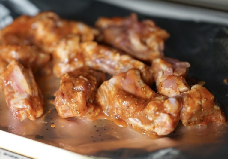 3)オーブンを190度に余熱しておき、スペアリブを入れて20分加熱する。