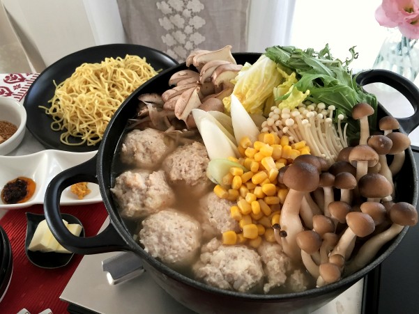 2)味噌にすりおろしたニンニクとごま油を加え、だし汁でのばす。3)鍋に☆の白菜の芯の部分を入れ、続いて丸めた鶏だんご、残りの☆の野菜類を入れて2)の鍋つゆを加え、火にかける。4)しめは下茹でした中華麺、もしくは鍋用ラーメンとバターを加えて味噌バター風味のラーメンに。薬味は白ごま、ゆずこしょう、ラー油などお好みのものをどうぞ。
