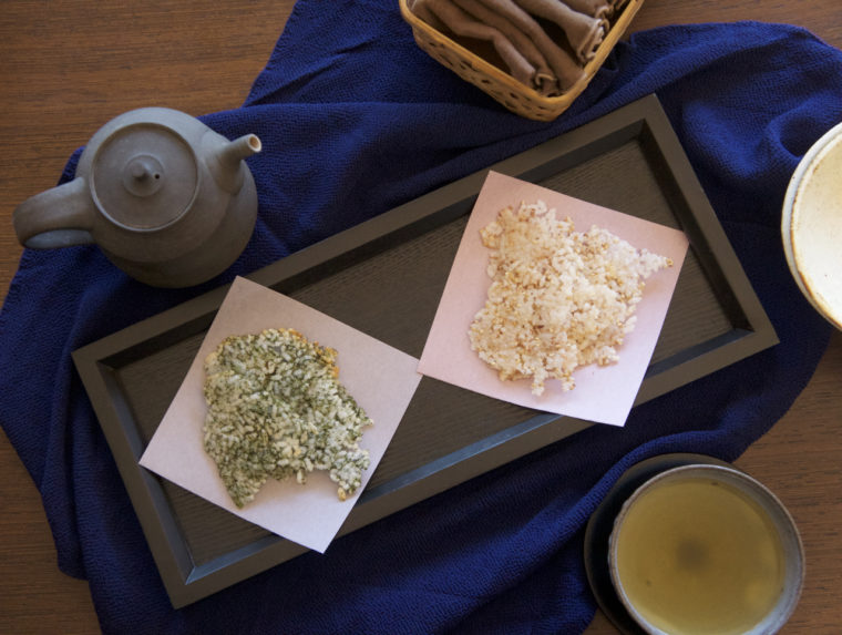 ・かつおごませんべいごはん・・・40gかつお節・・・大さじ山盛り1白ごま ・・・小さじ1/2塩・・・少々・青のりせんべいごはん・・・40g青のり・・・小さじ1塩・・・少々
