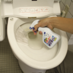 これを落とすには、通常の中性洗剤(トイレ用など)で洗う方法の他、酸を使う方法があります。便器内の固い汚れを緩めることにも使用した「クエン酸」を2〜5%の濃度に溶いたものを塗りつけ、メラミンスポンジなどでこすり落とします。酸を残すと鉄サビが出やすくなるので、すすぎはしっかり行いましょう。