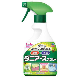 アレルギーの原因となる、主に刺さない「ダニ」のいそうな、でもいてほしくないような「場所」に噴霧することで駆除と予防ができるスプレー。ふきかけるだけなので使い方は容易ですが、薬剤を吸い込まないよう注意してください。主に噴霧する場所とは、例えば畳、じゅうたん、布ソファ、クッションなど。なかでも厄介な「イエダニ」「マダニ」「ノミ」がいる場合には直接噴射することで駆除します。