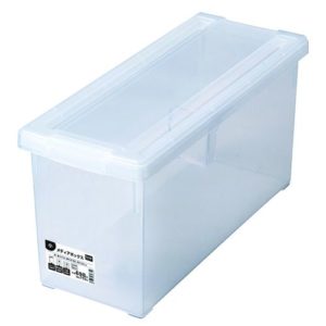 積み重ね可能。丈夫なので、使い方色々!クリアなケースなので、中身が良く見え、収納品が一目でわかる。フタがなくても積重ね可能。サイズ:約幅30×奥行44×高さ24.3cm(M) カラー:クリア藤原さんもおすすめ!一冊一冊に重みのある雑誌類は、本棚などに立てて置くよりコンテナなどに収納しておいたほうが傷みにくいもの。ただし相当な重量になるのでコンテナそのもののサイズに注意しましょう。小さめのように感じても取り扱いの際、あまりの重さに驚くことになります。