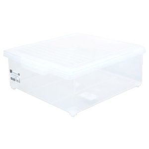 キャスター付きでベッド下等でも使いやすい。仕切り2枚付き。サイズ:約幅42.5×奥行き46.5×高さ17cm藤原さんもおすすめ!平べったくキャスターが付いているボックス。蓋もあります。ベッド下などのデッドスペースを活用したい向きに適しています。ただ、ベッド下というのは就寝中の身体から出る水分などでとりわけ湿気が多くなりがちなエリアです。ホコリもたまりやすく、ものがカビやすい環境である点は了承しておきましょう。