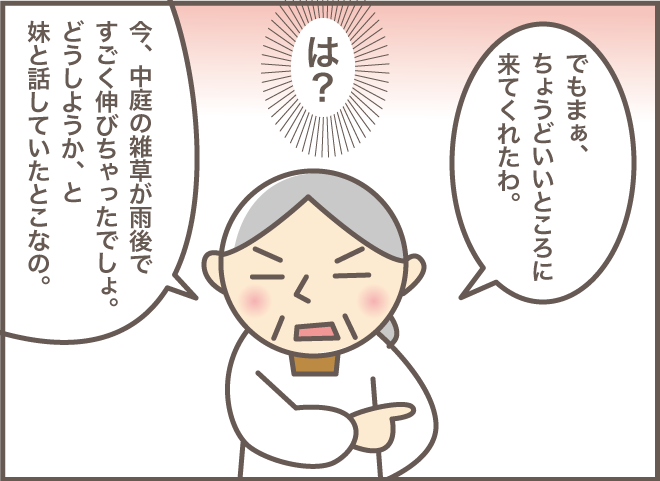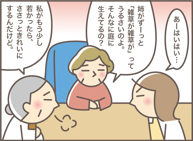 たしかに、同居が始まった頃の元気な2人は 毎日のように庭や家の周辺の掃除ばかりしていました。 ご近所のみなさんもきれいな庭があり、手入れに余念がありません。 それまでマンション生活だった嫁にとって 庭の草取りは自分の仕事に入れていませんでした。