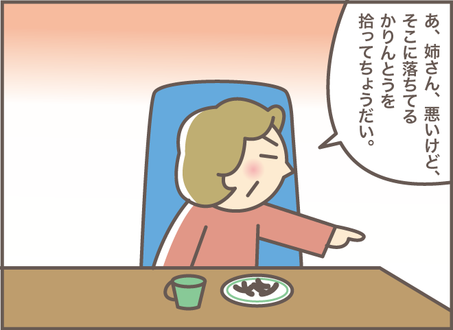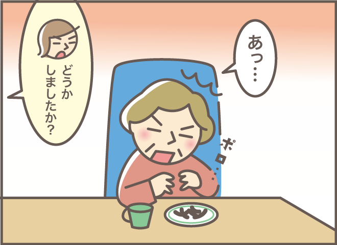 おばさんの手指はリウマチのため、力がはいりませんでした。箸やスプーンを使うのは難しかったのですがつまんで食べられるおやつなどは、自分で食べるよう努力していました。しかし…