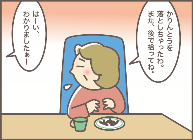 落とすこともしばしばありました。でもそんなことはいちいち気にせず、積極的に手指を動かしておやつを食べてもらいたいと思っていました。しかし…