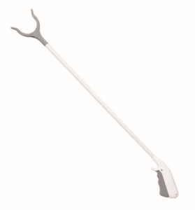 手が届かないときに便利なグッズ。家具のすき間に落としたものの回収や、高い窓のカーテンの開閉、ぞうきんを挟めば高いところの掃除にも。先端部はゴム張りで、コインや紙もしっかりキャッチ。ヘッド部の角度を変えられる。約83cm