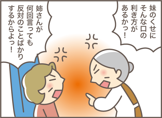 恒例の姉妹ゲンカ。認知症が進んだ姉に、イライラする妹。 しかし、おばさんのトイレ介助の時は、お義母さんも大事なサポーター。