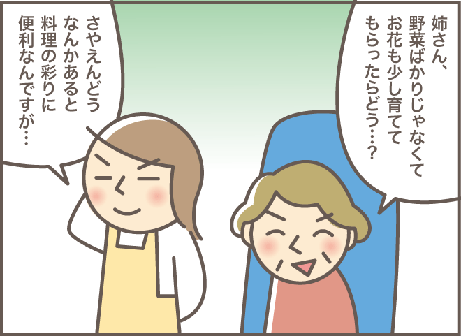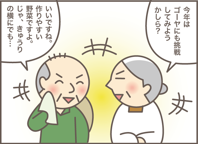 あくまで、管理人はお義母さんで私達の意見はまったく反映されない。 しかし、頼みのシルバーさんが体調を崩し 収穫を待たずして、来てもらえなくなった。 ついに嫁の出番。実はお義母さんに遠慮して言えなかったが 「家庭菜園」はちょっと興味があった。
