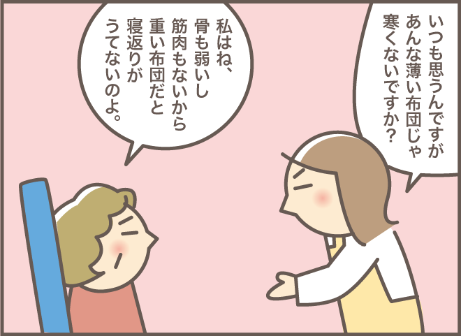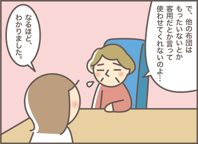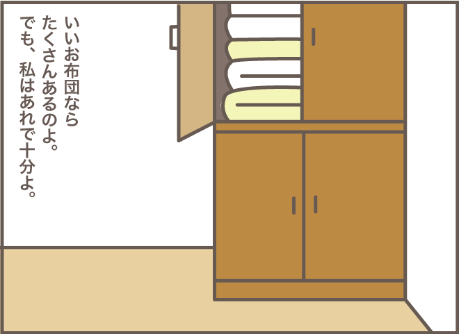 おばさんが、あのペラペラのせんべい布団を気に入って使っているわけではないことが判明。