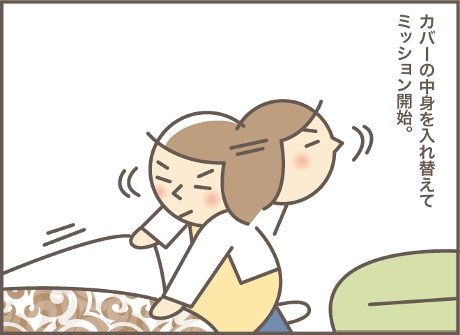 おばさんの使っていたせんべい布団のカバーの柄が特徴のあるエスニックな柄だったのでぱっと見て中身が入れ替わったとは、さすがのお義母さんも気づきませんでした。そして、翌日…