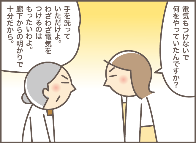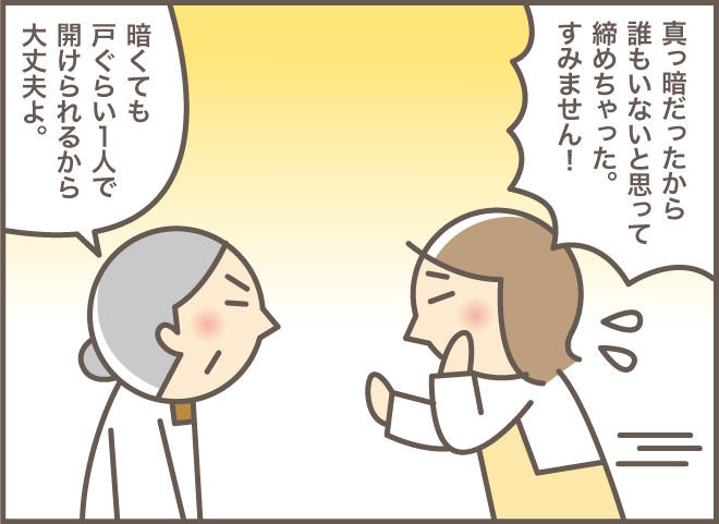 真っ暗な洗面所から、お義母さんが静かに出てきてびっくり。