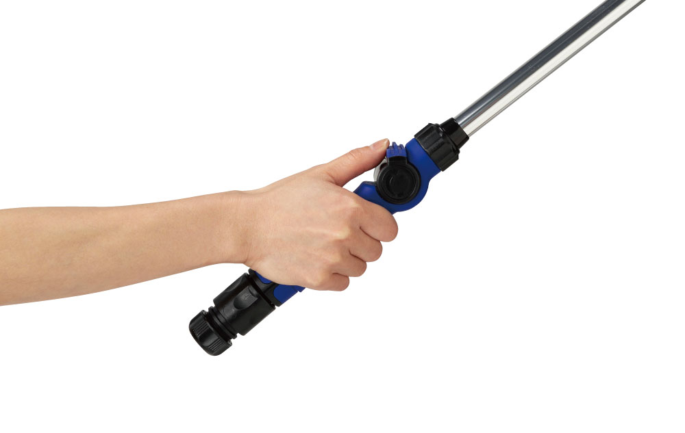 持ち手にあるレバーを使えば、片手で簡単に水量を調節できます。対象物や距離に応じて水量の調節ができるので、多様な洗浄作業に向いています。