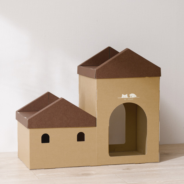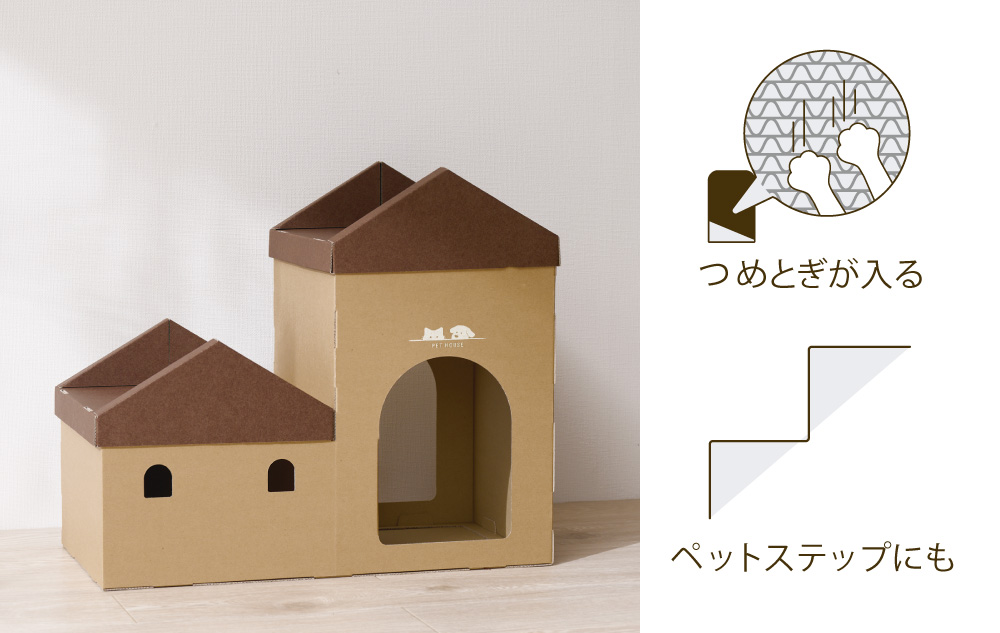 ハウスとステップの2通りの使い方ができます。高さが約44cmあるので、高いところが好きな猫ちゃんにおすすめです。こちらもDCM 猫のつめとぎ(約46×11cm)※別売りが2個収まる設計です。